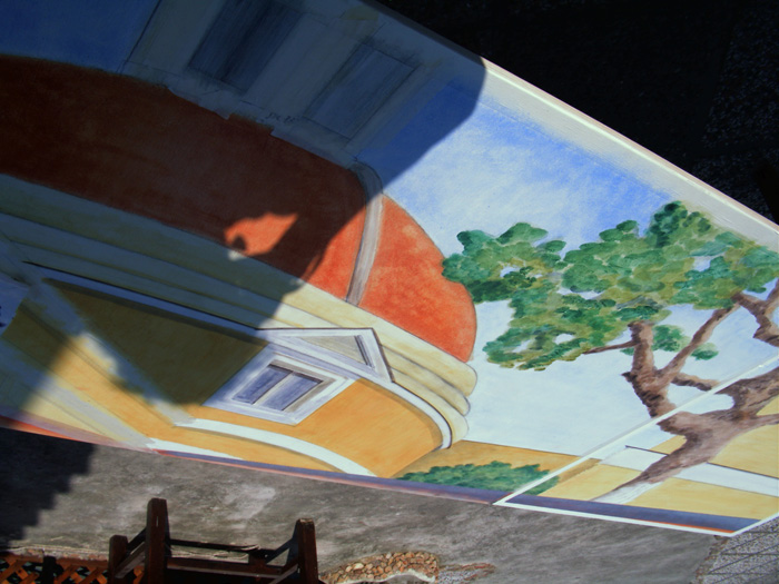 Uso quello che ho imparato come mezzo per arrivare a risultati nuovi (come : architettura + pittura = scenografia o trompe l’oeil).
